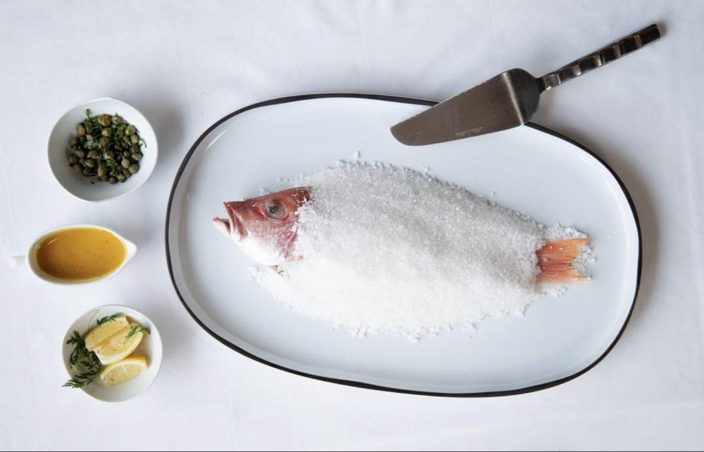 El pescado a la sal confirma que aquí entienden los tiempos de cocción. La preparación fue pareja, con carne jugosa y piel dorada. Pero lo que sostiene el plato no es solo la técnica, sino la salsa que lo acompaña: un equilibrio entre acidez y cremosidad que conviene guardar hasta el último bocado.