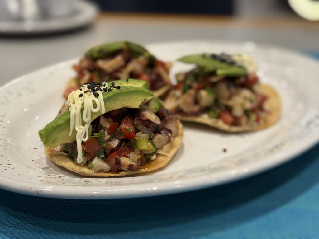 Las tostadas de pulpo (120 pesos, tres piezas) funcionan como deben: marisco fresco sobre base crujiente que resiste la humedad, pico de gallo equilibrado y aroma oceánico genuino. Aquí no hay trucos, solo producto bien manejado. La porción es honesta y el precio, justo. Es el tipo de botana que funciona tanto para el trago vespertino como para el hambre real.