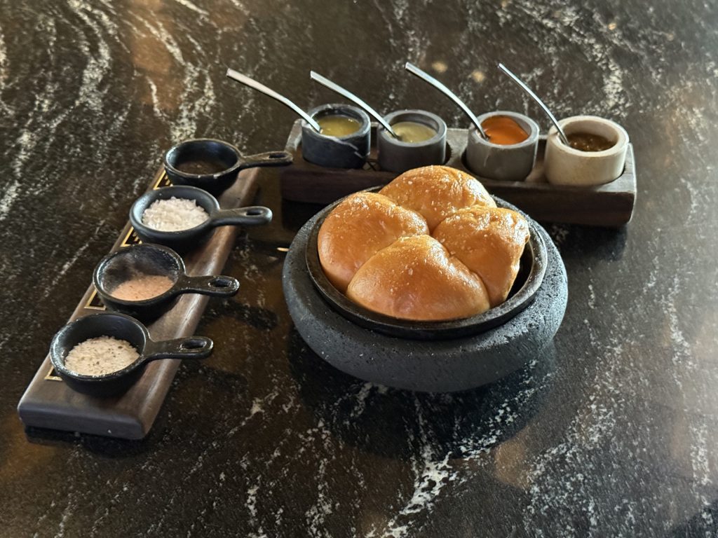 La experiencia arranca con una secuencia de sales y salsas que no son puro espectáculo: tienen sentido, técnica y propósito. Desde la sal ahumada de nogal hasta la trufada francesa, pasando por una salsa de xoconostle y chile morita que podría estar en la carta de cualquier restaurante de autor.